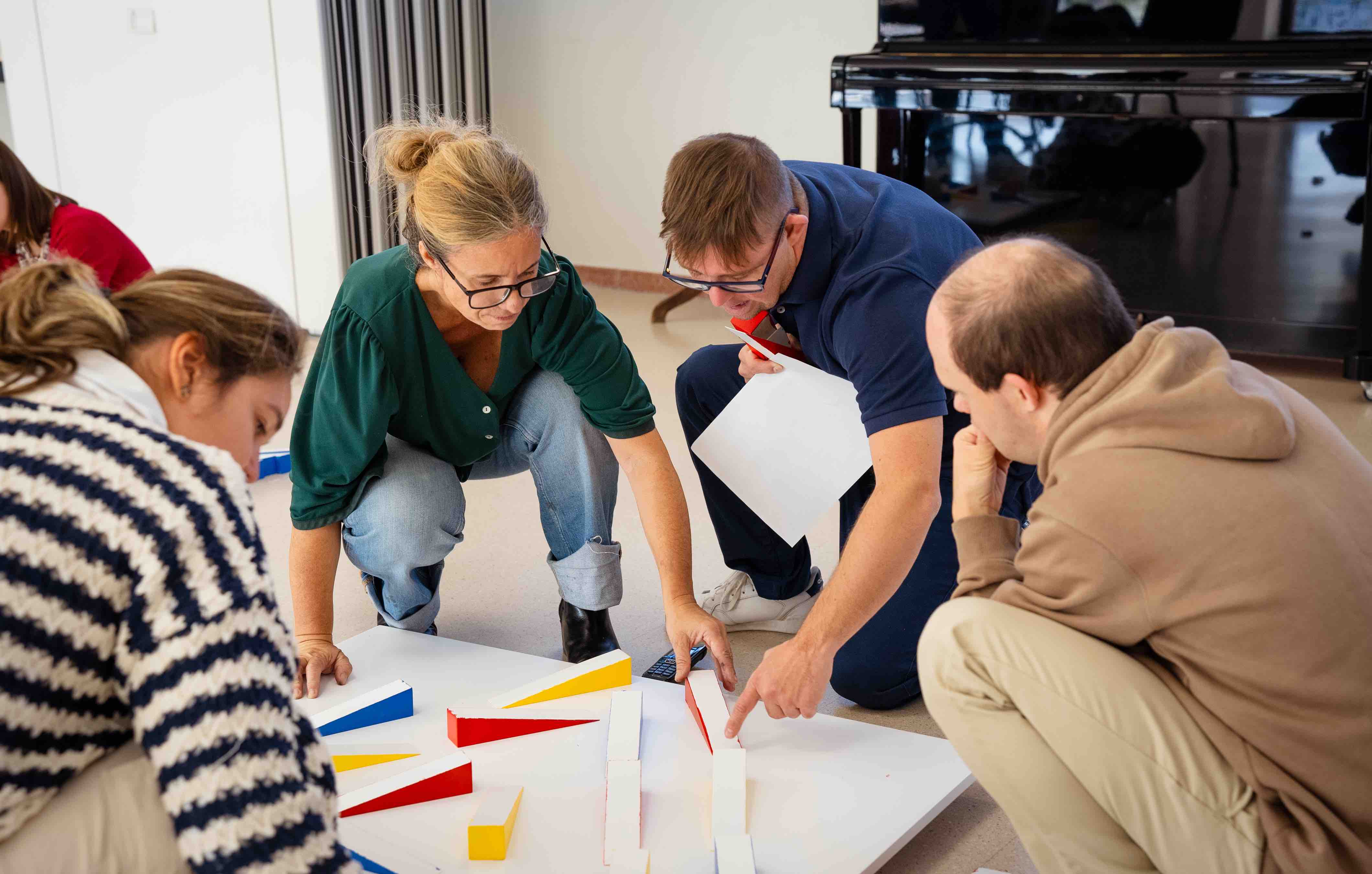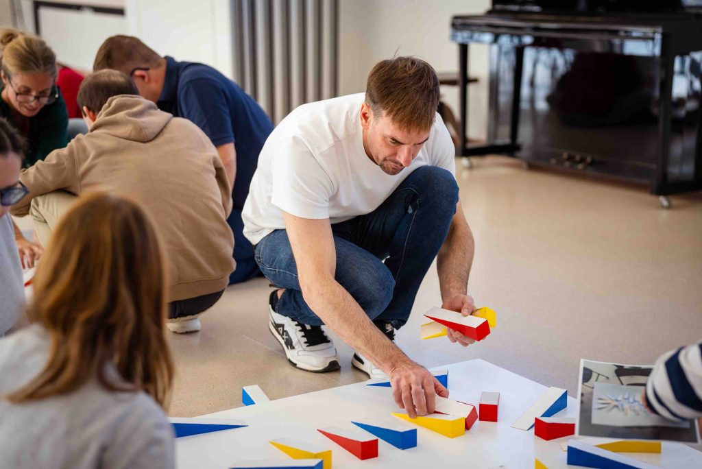 Fue un ejercicio que requirió concentración, coordinación y trabajo en equipo. Los grupos demostraron gran implicación, ayudándose mutuamente y mostrando una notable capacidad para observar, ajustar y cooperar. Prestaron especial atención al equilibrio de colores, las distancias y la armonía general del conjunto.