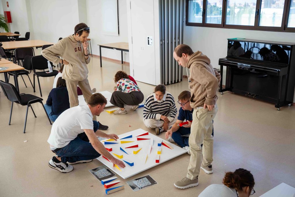Durante todo el proceso, David fue guiando a los participantes, orientándoles sobre aspectos técnicos y compositivos —como la disposición del color o el equilibrio visual—, pero siempre respetando su visión personal y animándoles a tomar decisiones propias. Su papel fue acompañar sin imponer, fomentando la autonomía creativa y la confianza en el propio criterio artístico de cada uno.