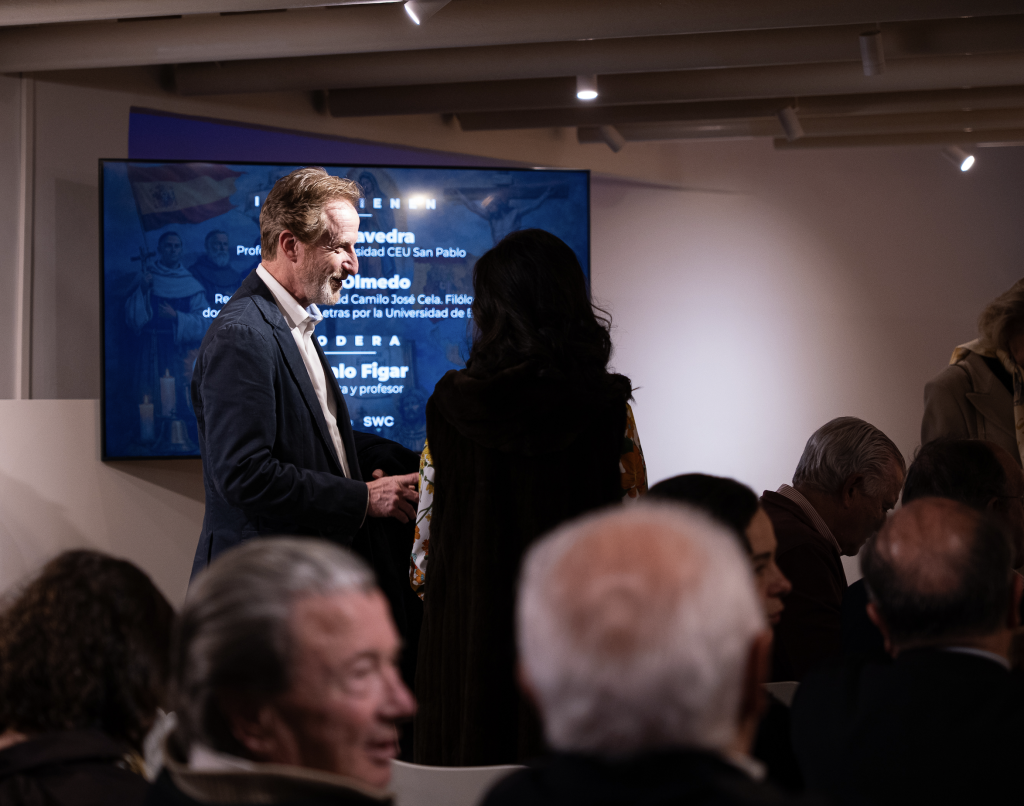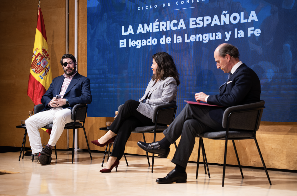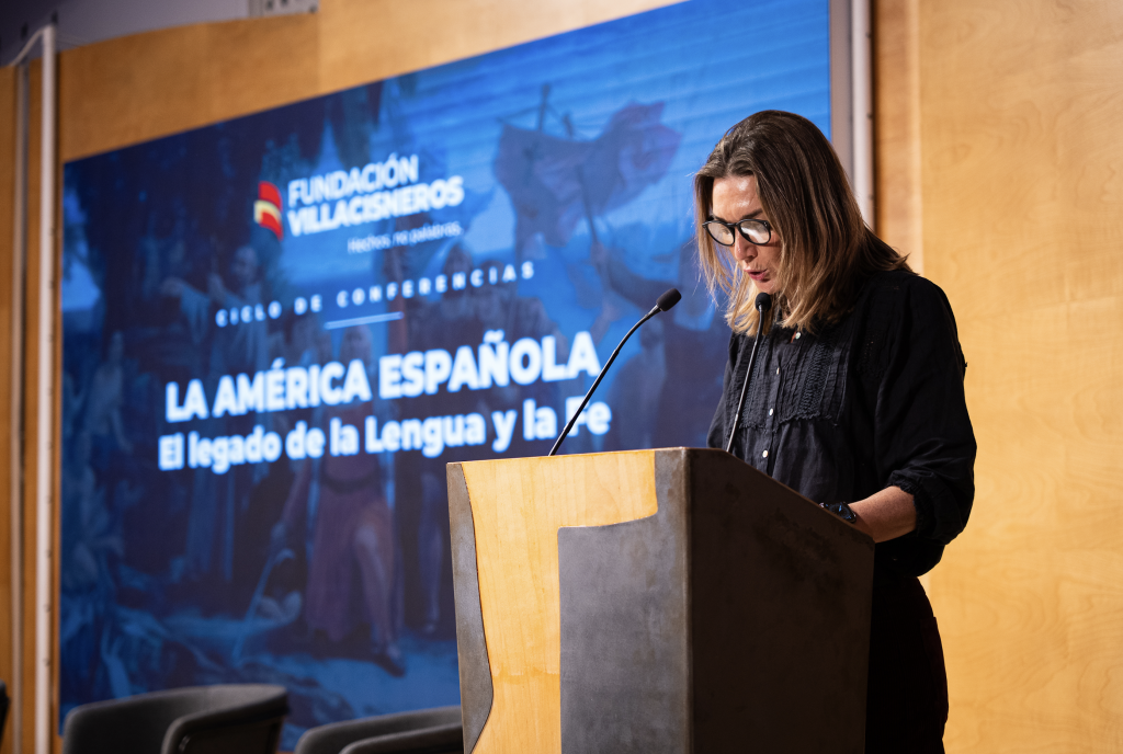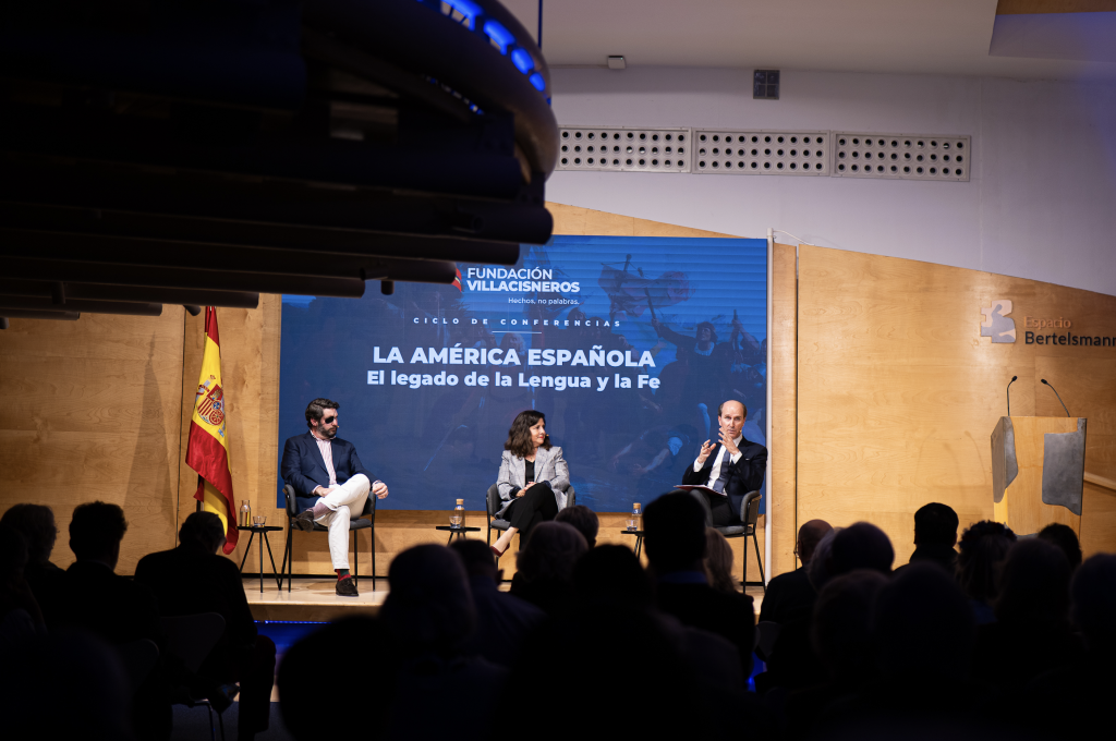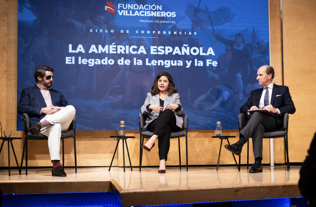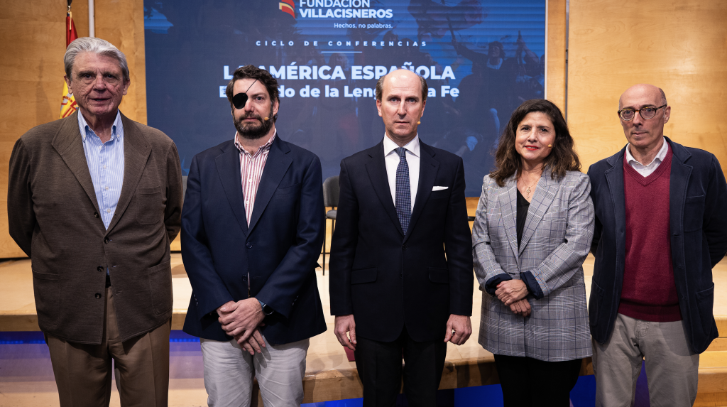 La Fundación Villacisneros, institución familiar e independiente comprometida con la defensa de los valores del humanismo cristiano, la unidad de España, la causa de las víctimas del terrorismo de ETA y la acción social para promover la igualdad de oportunidades entre todos los ciudadanos, celebró ayer 25 de febrero el segundo coloquio del ciclo “La América española”. En esta ocasión, abordaron el principal legado que dejamos los españoles en aquel continente: la lengua y la fe. Les acompañaron para profundizar en estas dos cuestiones, los profesores María Saavedra y Jaime Olmedo. A la primera pregunta de Gonzalo Figar, moderador del encuentro, sobre por qué podemos considerar lengua y fe como principal herencia, María Saavedra recordó que el mandato del Papa Alejandro VI a la reina Isabel para la legitimidad de la conquista, fue que su finalidad debía ser la evangelización de los indígenas. Jaime Olmedo destacó que los españoles no solo alfabetizaron en castellano, sino que gramatizaron las lenguas locales, ágrafas hasta entonces, para conservarlas asegurando así un doble legado.
