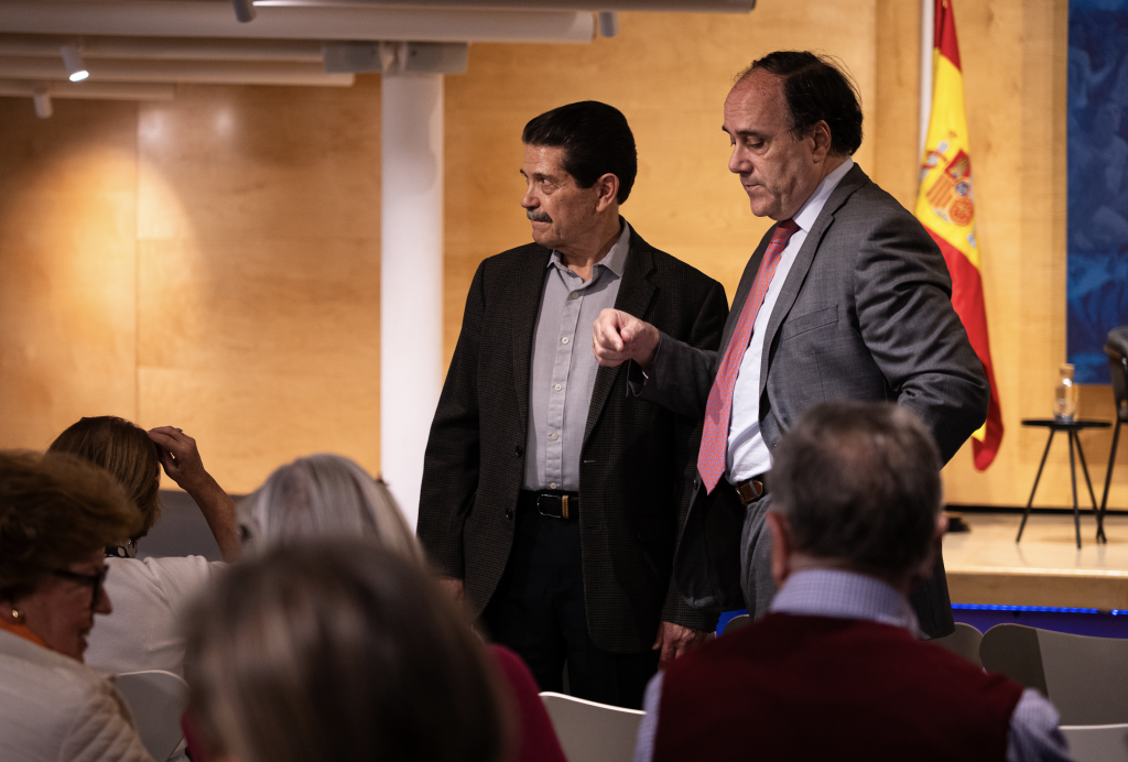 A preguntas del público se abordó también la aportación española al nacimiento de los Estados Unidos de América, circunstancia esta que con frecuencia se olvida. Ambos ponentes consideraron que la celebración del 250 aniversario del nacimiento de los Estados Unidos puede ser una oportunidad para recordar el apoyo de España a los norteamericanos. No solo por el apoyo militar que fue esencial para independizarse de Inglaterra, sino también porque, de algún modo, los postulados de la escuela de Salamanca estuvieron presentes en su declaración de independencia.