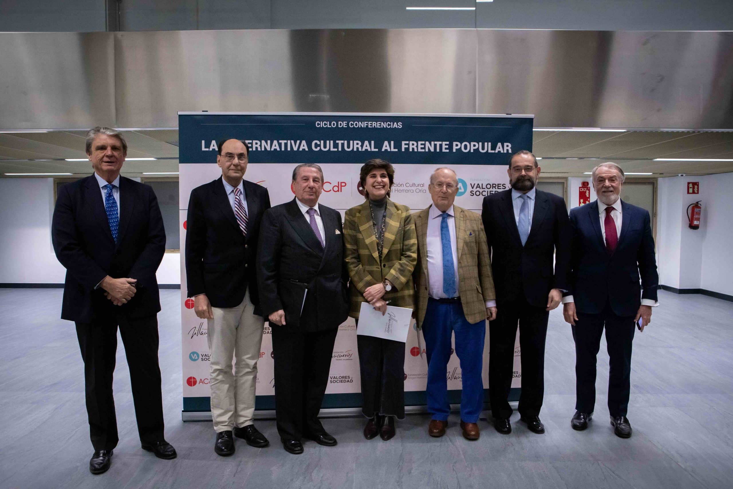 Bajo el título ‘La destrucción de nuestro orden social’, ha tenido lugar un coloquio en el que han participado el historiador y escritor Fernando García de Cortázar; el ex alcalde de La Coruña, Francisco Vázquez; y el ex presidente del Parlamento Europeo, Alejo Vidal-Quadras. El acto, que ha sido presentado por la vicepresidenta de la Fundación Villacisneros, María San Gil, está enmarcado dentro del ciclo ‘La alternativa cultural al Frente Popular’, una serie de encuentros organizados por la Fundación Valores y Sociedad, la Fundación Villacisneros y la Asociación Católica de Propagandistas, los cuales se vienen celebrando en el Auditorio Mutua Madrileña.