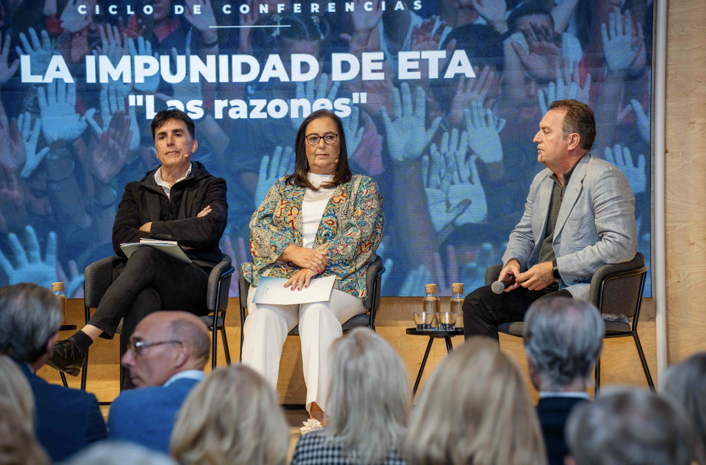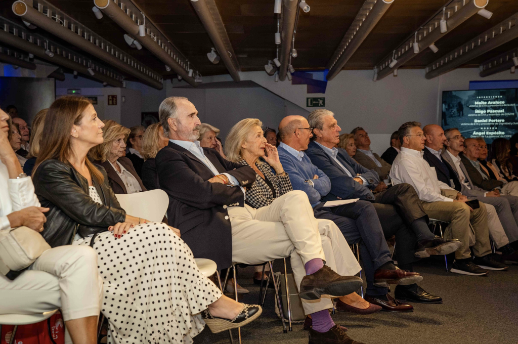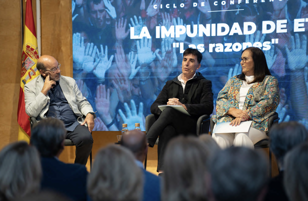 El 24 de septiembre hemos iniciado un nuevo ciclo de coloquios en los que, con el título “La impunidad de ETA”, analizaremos las razones que han permitido que alrededor del 40% de los crímenes de la banda terrorista ETA no hayan sido esclarecidos. En la primera jornada, Maite Araluce, presidenta de la AVT, Daniel Portero, presidente de Dignidad y Justicia e Íñigo Pascual, miembro de Covite, explicaron por qué hemos llegado a esta situación. Nos acompañó como moderador Ángel Expósito, director de “La linterna de Cope”.